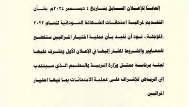 إعلان جديد من سفارة السودان بالرياض بشأن مراقبة إمتحانات الشهادة السودانية