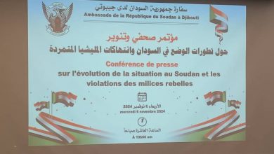 السفارة السودانية بجيبوتي تعقد مؤتمر صحفي حول انتهاكات مليشيا التمرد بحضور أعضاء السلك الديبلوماسي وعدد من المنظمات والهيئات