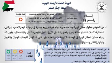 الأرصاد الجوية تحذر من هطول أمطار غزيرة جدًا وامكانية فيضان في نهري القاش وعطبرة اليوم الاثنين