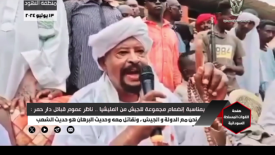 لدى إنضمام قوة بكامل مركباتها و تسليحها للقوات المسلحة ناظر عموم قبائل دار حمر يعلنها داوية