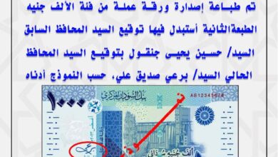 إعلان مهم من البنك المركزى بشأن العملة السودانية فئة الف جنيه
