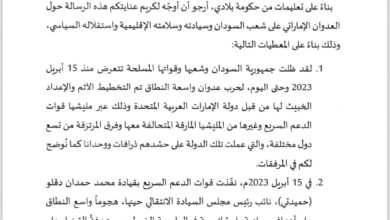 النص الكامل لفحوى شكوى السودان دولة الإمارات لدى الأمم المتحدة