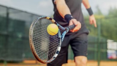 قارورة مياه تسقط على رأس لاعب تنس شهير وتوقعه أرضاً